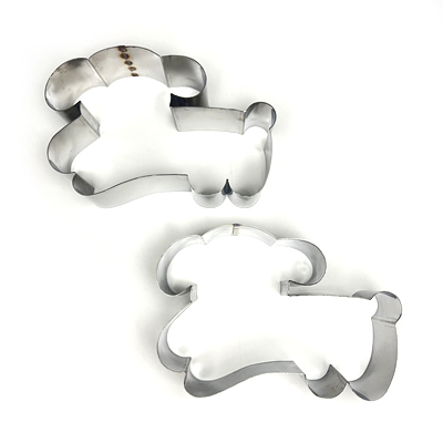 スタッフ手作りのクッキー型。ライン入り、目はステン棒を使用。