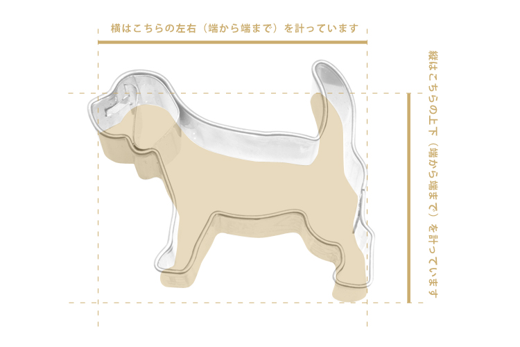 縁折り、縁巻き部分の計測ではなく、仕上がるお菓子のサイズに近い、